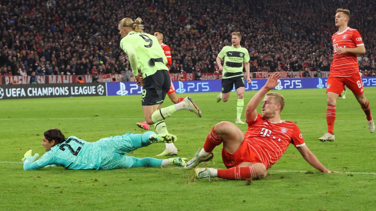 Haaland sút phạt đền qua khung thành (phút 37), nhưng đã cướp đi hy vọng cuối cùng của Bayern với bàn thắng thứ 41 trong trận đấu thứ 48 cho Manchester (thứ 57). Bàn gỡ hòa từ quả phạt đền do Joshua Kimmich (phút 83) thực hiện quá muộn sau thất bại 0-3 rõ ràng ở trận lượt đi.